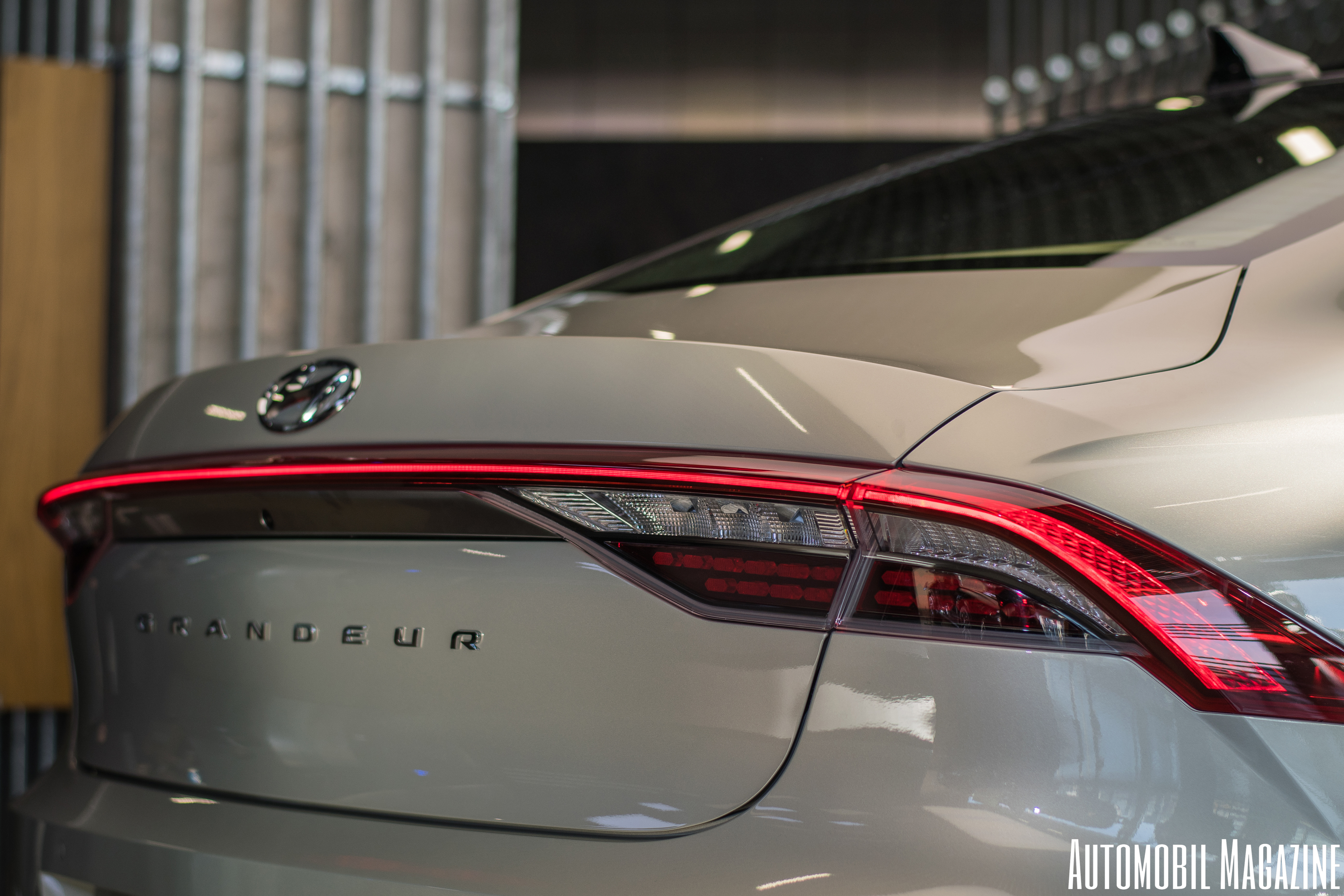 뒤쪽으로 넘어오면 그랜저의 날렵하고 기다란 테일 라이트가 눈에 띈다. 이전 세대가 가지고 있던 형식을 그대로 유지하면서 새로운 그랜저만의 매력을 가질 수 있게 하였다. 좌우로 기다란 램프를 통해서 뒤에서 바라본 그랜저가 더 커 보일 수 있도록 하였고 중후함 또한 갖추게 되었다. 어두운 곳에서 얇고 긴 램프만 켜져 있는 모습을 보면 굉장히 미래지향적으로 보이는 것이 또 다른 특징이자 매력이다. 어쩌면 밤에 본 그랜저의 모습이 조금은 생소할지도 모르겠다.